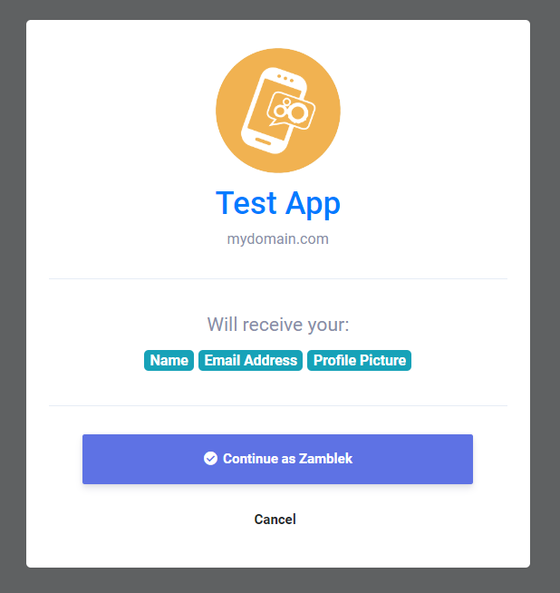 Начиная процесс входа в OAuth, вы должны использовать ссылку для своего приложения, как это:
